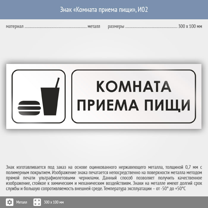 Знак «Комната приема пищи», И02 (металл, 300х100 мм) в Нижнекамске купить