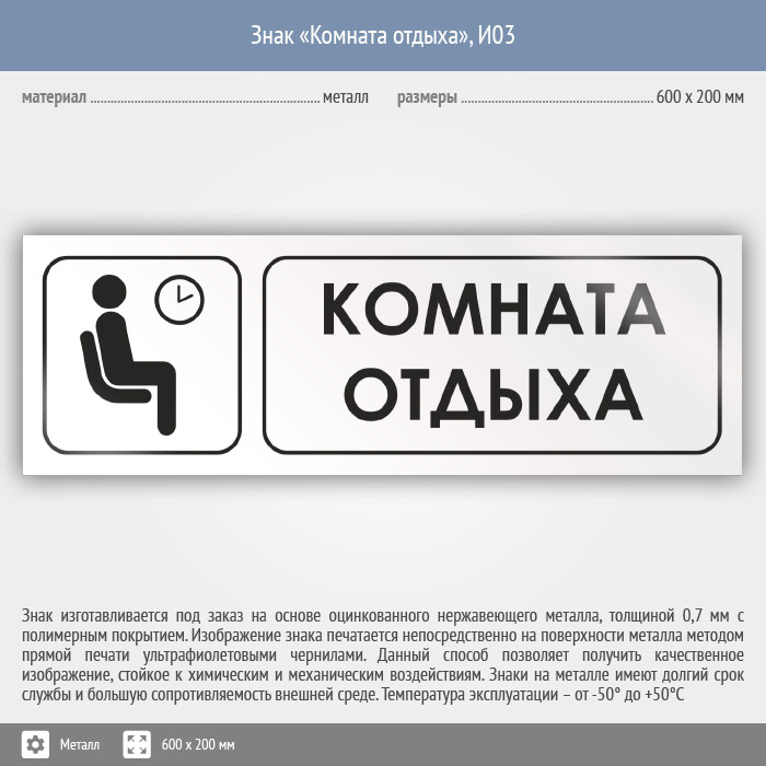 Знак «Комната отдыха», И03 (металл, 600х200 мм) в Нижнекамске купить