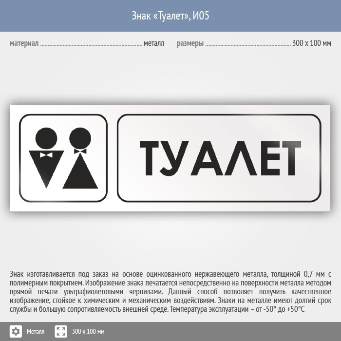 Знак «Туалет», И05 (металл, 300х100 мм) в Нижнекамске купить