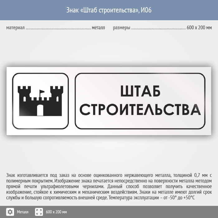 Знак «Штаб строительства», И06 (металл, 600х200 мм) в Нижнекамске купить