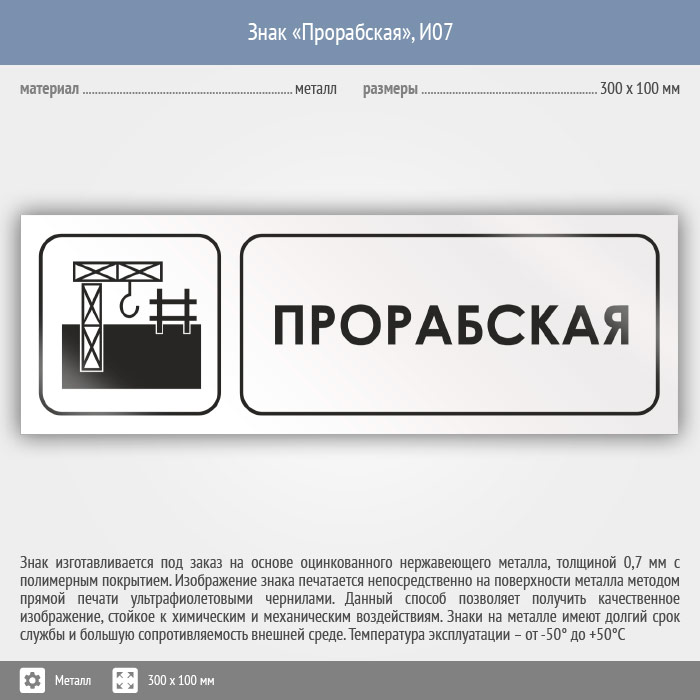 Знак «Прорабская», И07 (металл, 300х100 мм) в Нижнекамске купить