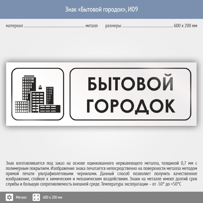 Знак «Бытовой городок», И09 (металл, 600х200 мм) в Нижнекамске купить