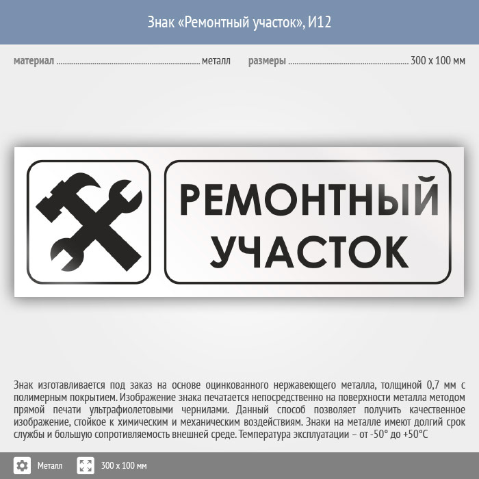 Знак «Ремонтный участок», И12 (металл, 300х100 мм) в Нижнекамске купить