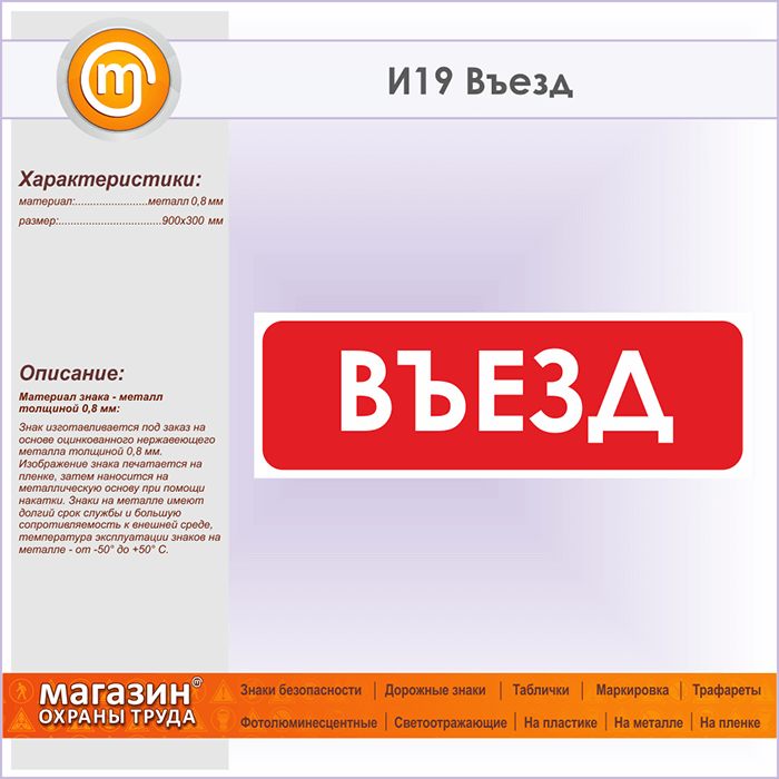 Знак «Въезд», И19 (металл, 900х300 мм) в Нижнекамске купить