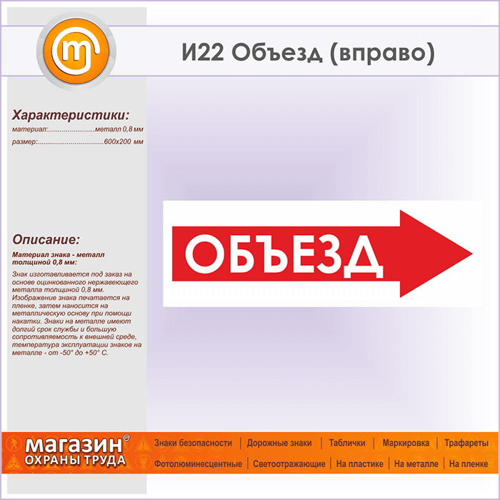 Знак «Объезд (вправо)», И22 (металл, 600х200 мм) в Нижнекамске купить
