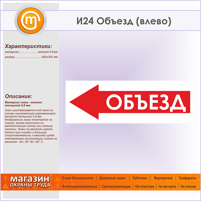Знак «Объезд (влево)», И24 (металл, 900х300 мм) в Нижнекамске купить