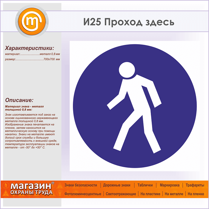 Знак «Проход здесь», И25 (металл, 700х700 мм) в Нижнекамске купить