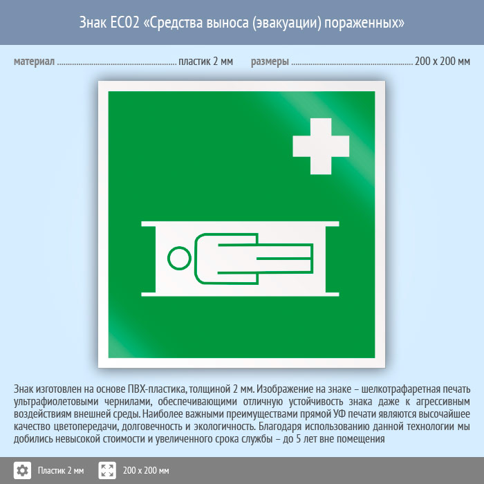 Знак EC02 «Средства выноса (эвакуации) пораженных» (пластик, 200х200 мм) в Нижнекамске купить