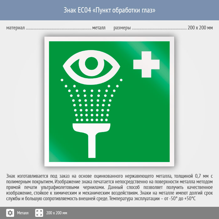 Знак EC04 «Пункт обработки глаз» (металл, 200х200 мм) в Нижнекамске купить