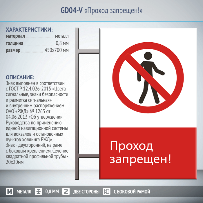 Знак «Проход запрещен!», GD04-V (двусторонний вертикальный, 450х700 мм, металл, на раме с боковым креплением) в Нижнекамске купить
