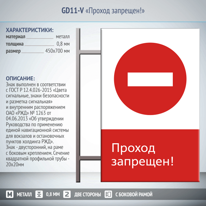 Знак «Проход запрещен!», GD11-V (двусторонний вертикальный, 450х700 мм, металл, на раме с боковым креплением) в Нижнекамске купить