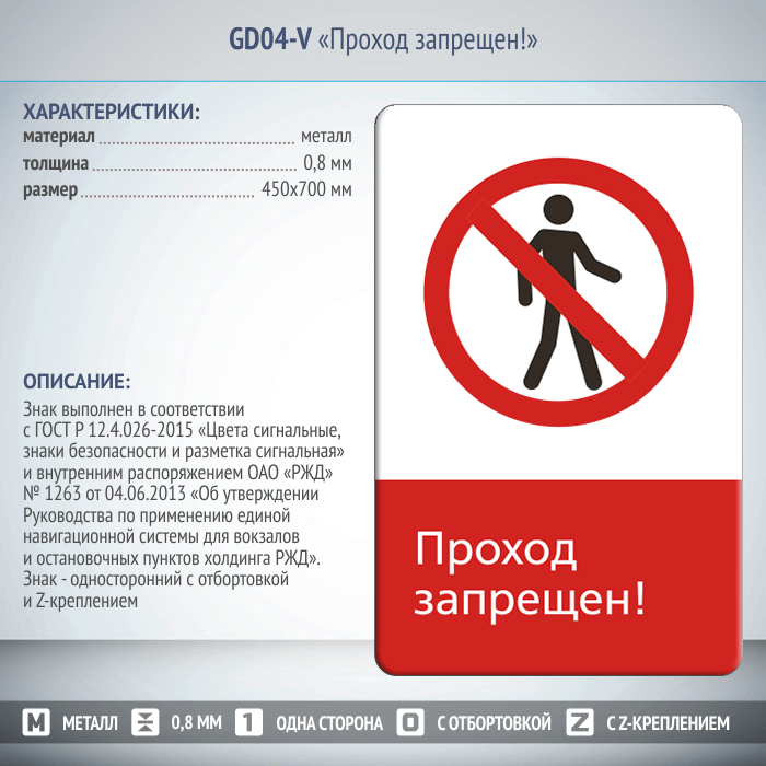 Знак «Проход запрещен!», GD04-V (односторонний вертикальный, 450х700 мм, металл, с отбортовкой и Z-креплением) в Нижнекамске купить