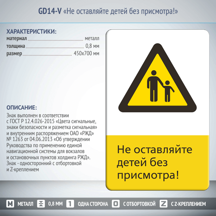 Знак «Не оставляйте детей без присмотра!», GD14-V (односторонний вертикальный, 450х700 мм, металл, с отбортовкой и Z-креплением) в Нижнекамске купить