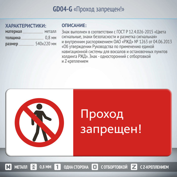 Знак «Проход запрещен!», GD04-G (односторонний горизонтальный, 540х220 мм, металл, с отбортовкой и Z-креплением) в Нижнекамске купить