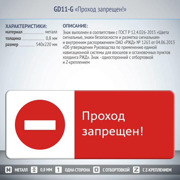 Знак «Проход запрещен!», GD11-G (односторонний горизонтальный, 540х220 мм, металл, с отбортовкой и Z-креплением) в Нижнекамске купить