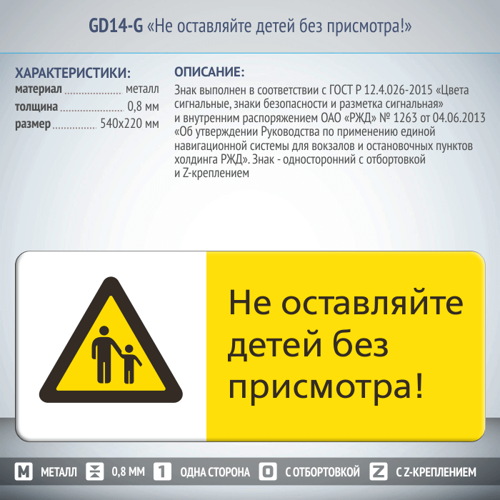 Знак «Не оставляйте детей без присмотра!», GD14-G (односторонний горизонтальный, 540х220 мм, металл, с отбортовкой и Z-креплением) в Нижнекамске купить