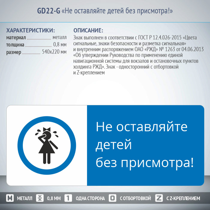 Знак «Не оставляйте детей без присмотра!», GD22-G (односторонний горизонтальный, 540х220 мм, металл, с отбортовкой и Z-креплением) в Нижнекамске купить