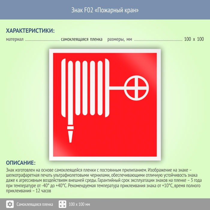 Знак F02 «Пожарный кран» (пленка, 100х100 мм) в Нижнекамске купить
