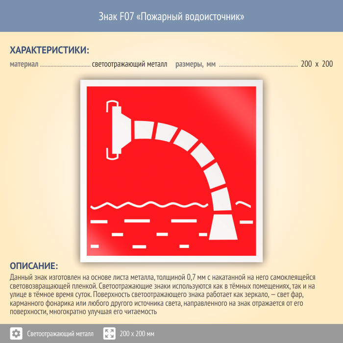 Знак F07 «Пожарный водоисточник» (светоотражающий металл, 200х200 мм) в Нижнекамске купить