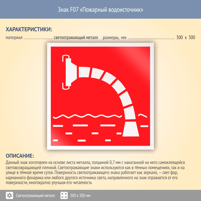 Знак F07 «Пожарный водоисточник» (светоотражающий металл, 300х300 мм) в Нижнекамске купить