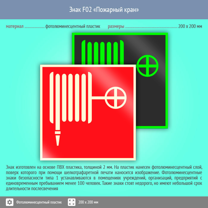 Знак F02 «Пожарный кран» (фотолюминесцентный пластик, 200х200 мм) в Нижнекамске купить