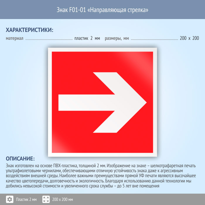 Знак F01-01 «Направляющая стрелка» (пластик, 200х200 мм) в Нижнекамске купить
