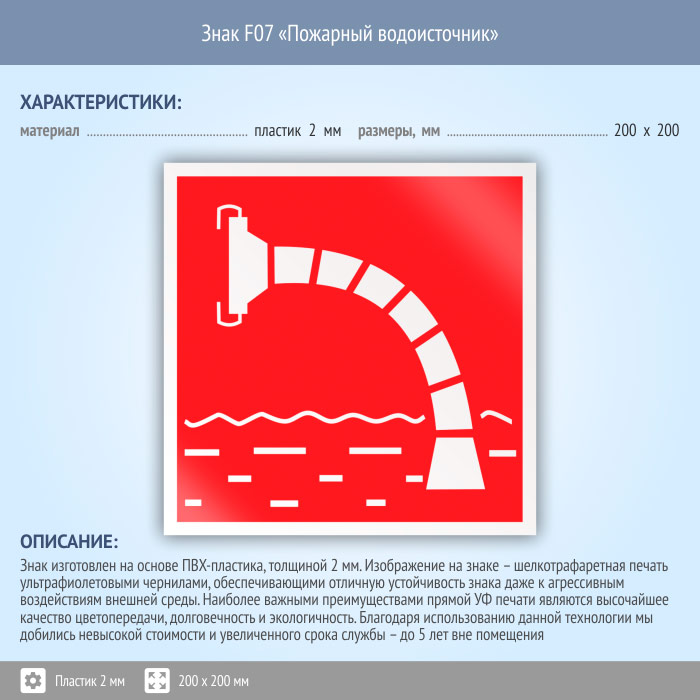 Знак F07 «Пожарный водоисточник» (пластик, 200х200 мм) в Нижнекамске купить