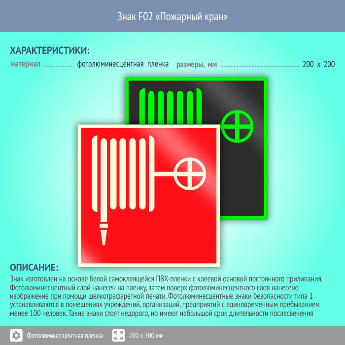 Знак F02 «Пожарный кран» (фотолюминесцентная пленка, 200х200 мм) в Нижнекамске купить