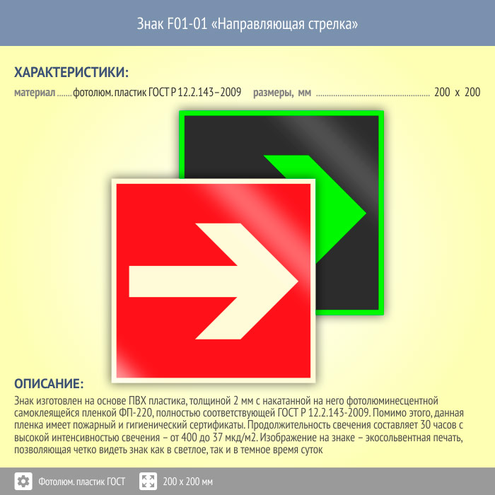 Знак F01-01 «Направляющая стрелка» (фотолюминесцентный пластик ГОСТ 34428-2018, 200х200 мм) в Нижнекамске купить