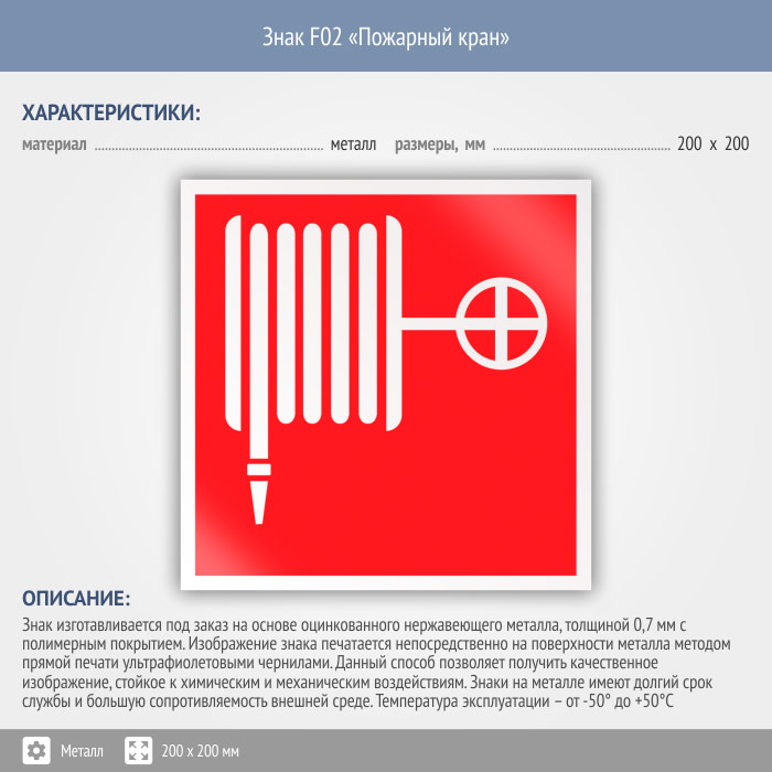 Знак F02 «Пожарный кран» (металл, 200х200 мм) в Нижнекамске купить