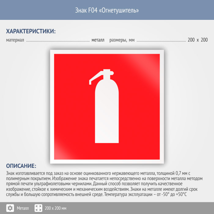Знак F04 «Огнетушитель» (металл, 200х200 мм) в Нижнекамске купить